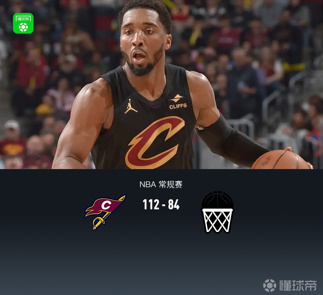 第四节骑士普罗克特拿下6分,篮网阿巴吉拿下5分,最终骑士112-84战胜篮网