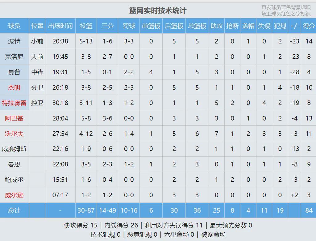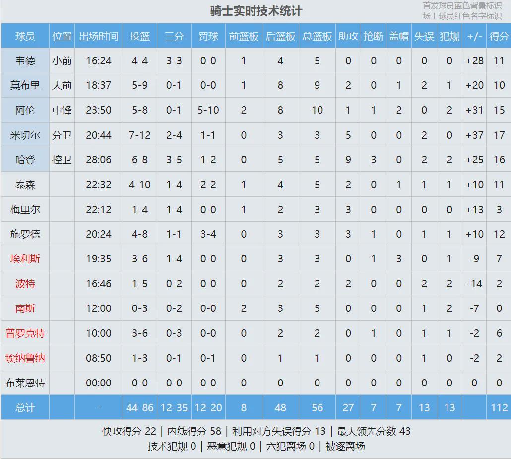 第三节开始,骑士又轰出一波11-0,分差迅速来到30+!第三节后半段,骑士最多领先到43分,比赛彻底进入垃圾时间。篮网这边小波特失去准星,前三节的三分球只有6中1。他本赛季场均25分7.2篮板3.2助攻,三分命中率38.5%。