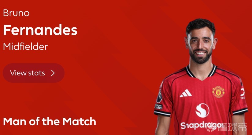 进球+造6次机会,B费当选曼联2-0热刺全场最佳球员